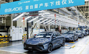 Comau designed and built an intelligent and flexible automated framing line for Hycan’s Hangzhou assembly plant. Photo courtesy Hycan Automotive Technology Co. Ltd
